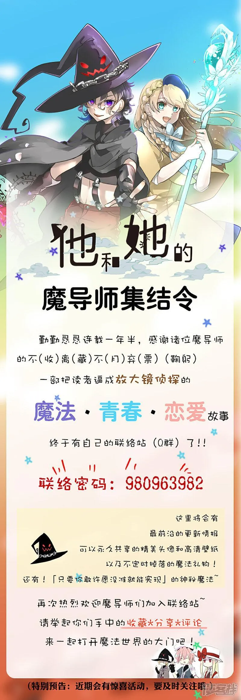 【每周五、七更新】传说很久以前,有一位非常邪恶的魔导师。他面容英俊,性格却冷酷残暴,所到之处血流成河掀起一阵血雨腥风。后来,一位如天使般的善之大魔导师出现。她击败了恶之大魔导师,成为了拯救世界的英雄……百年以后,命运的齿轮再次转动。恶之大魔导师的转世——塔菲与善之大魔导师的转世——菲奥在魔法学院再次相遇,这次不是作为敌人,而是命运与共的搭档!不过看似风平浪静的校园里却暗藏危机,塔菲与菲奥在联手应对各种突发情况的过程中,逐渐加深了对彼此的了解,两人的关系也悄然转变……