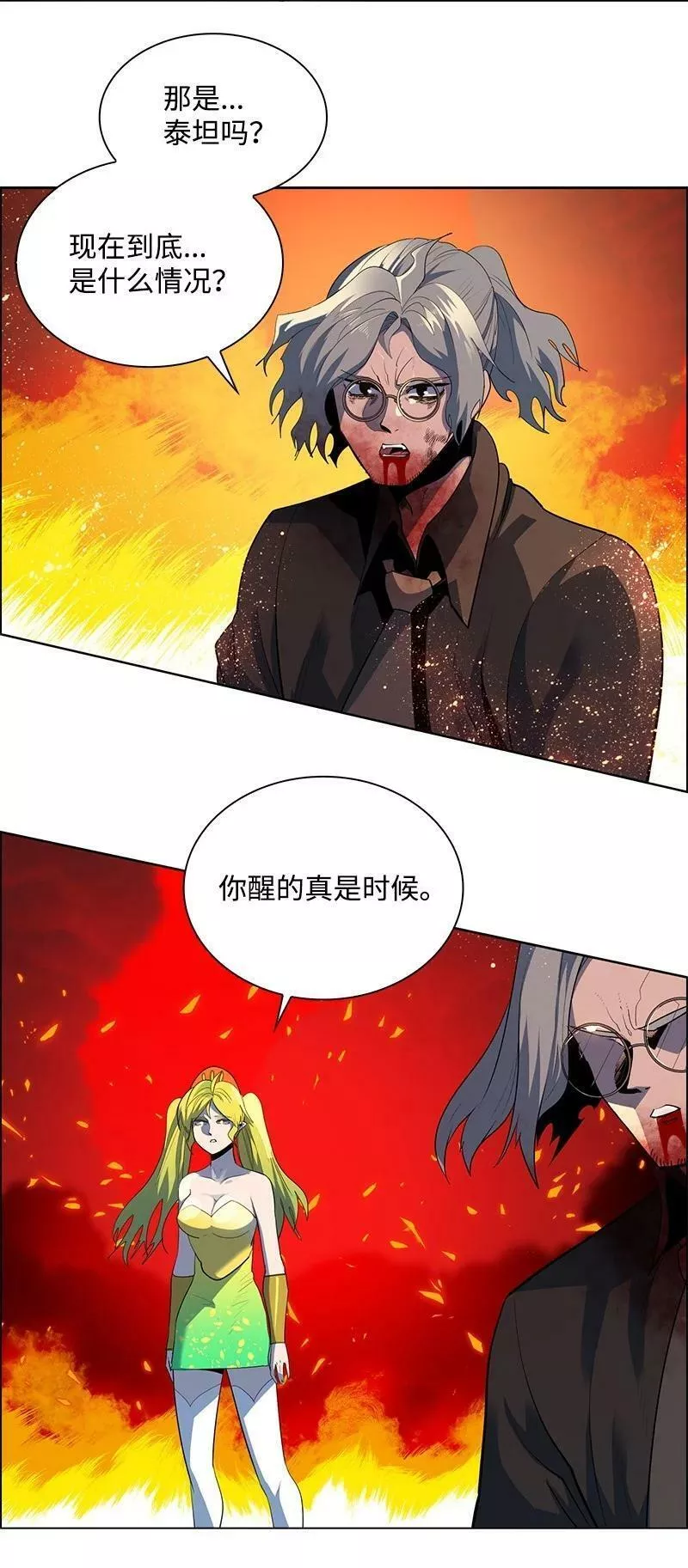 外界之神来袭,人间陷入了排山倒海般的绝望之中,生灵涂炭……而当内界众神在经过了数年的苦苦战斗后,也最终以战败收场。在战死前的最后时刻,希腊神克洛诺斯牺牲了自己,重新开启了时间之门。而众神最后选择了金幽元,这个神塔中唯一的人人类,让他回到过去,重新将众神凝聚。