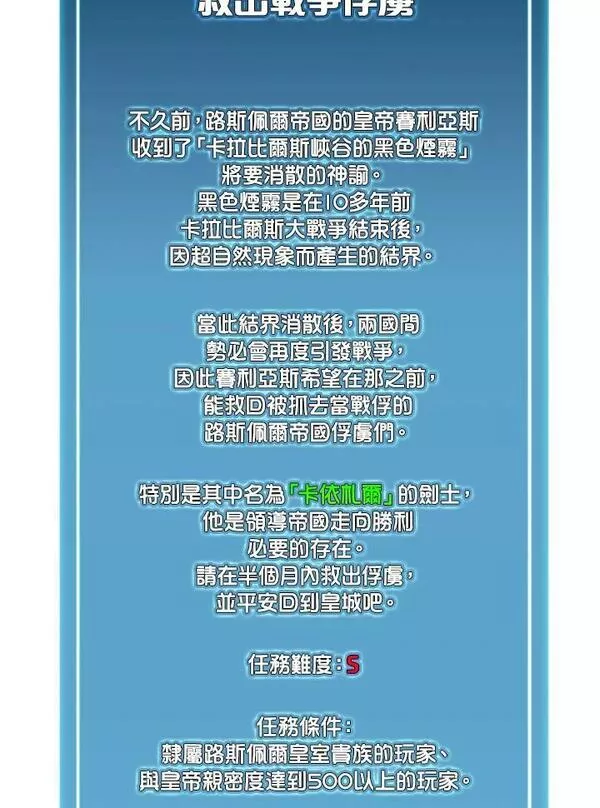 简介「卡伊兰」是一款全球知名度最高的VR(虚拟实境)游戏。而伊安则是在虚拟实境学系系上,众人公认的游戏成瘾者。身为伺服器排行前段的弓箭手,伊安为了转职成偶然获得的隐藏职业,不顾众人反对,果断删除了苦练到93等的角色。而他选择的职业,竟是卡伊兰最令人无言的召唤术士?不料,祸不单行,伊安若是想逃出成绩被打上F的危机,就必须在两个月内把角色练回93等...然而在练等出了名地困难的卡伊兰世界里,爬上100等至少需要1年。伊安就此展开了两个月内要练到93等的「不可能的任务」...为了升等,必须更快、更彻底、更有毅力。「驯兽大师」开始了一段属于他的传说之旅!
