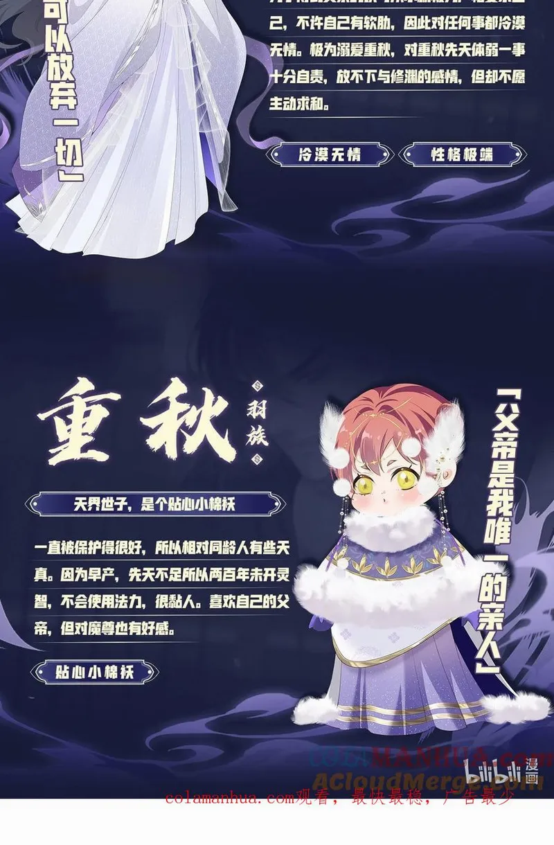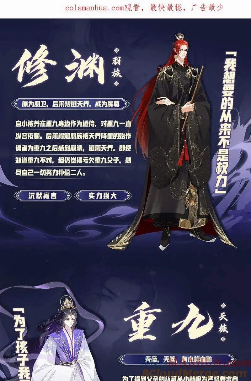 帝君有喜又名,类型为古风的高人气漫画,漫画简介:简介天帝重九终于愿和魔界谈判,重开两界边境,于是带领天界使团来到魔界。魔尊修渊亲自迎接,也终于见到了自己和重九的孩子,重秋。