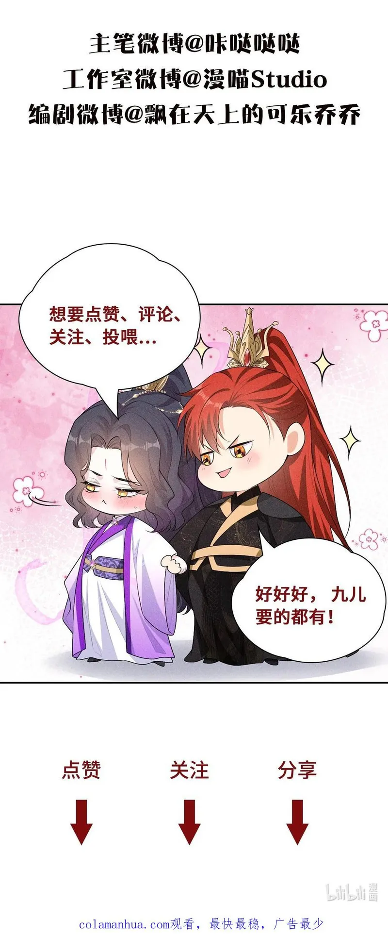 帝君有喜又名,类型为古风的高人气漫画,漫画简介:简介天帝重九终于愿和魔界谈判,重开两界边境,于是带领天界使团来到魔界。魔尊修渊亲自迎接,也终于见到了自己和重九的孩子,重秋。