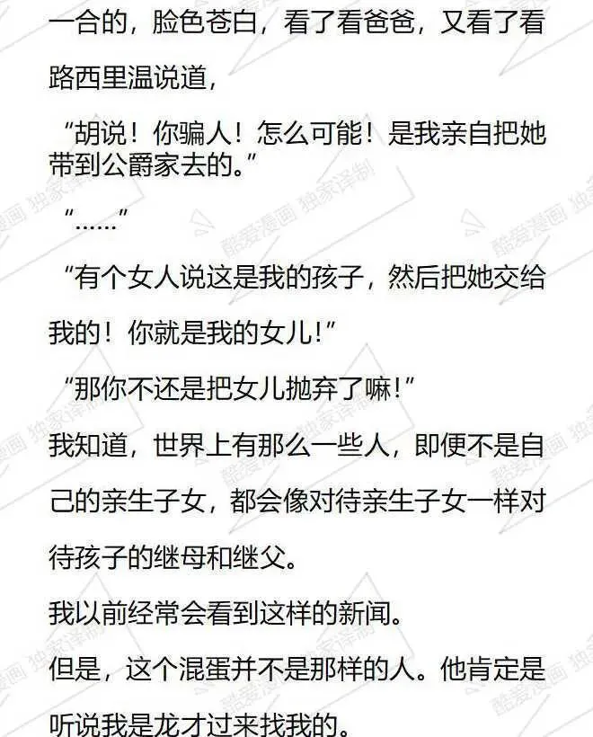 小说版被恶棍们抚养中又名,类型为日常|奇幻的高人气漫画,漫画简介:【小说内容从第28话开始,对应的漫画章节为第22话,1-27话的小说内容等后续补全。】本以为我只是个私生女..没想到还要和家人分道扬镳成为陌生人?附身在配角身上1年后,我幡然醒悟,我马上就要被赶出家门...