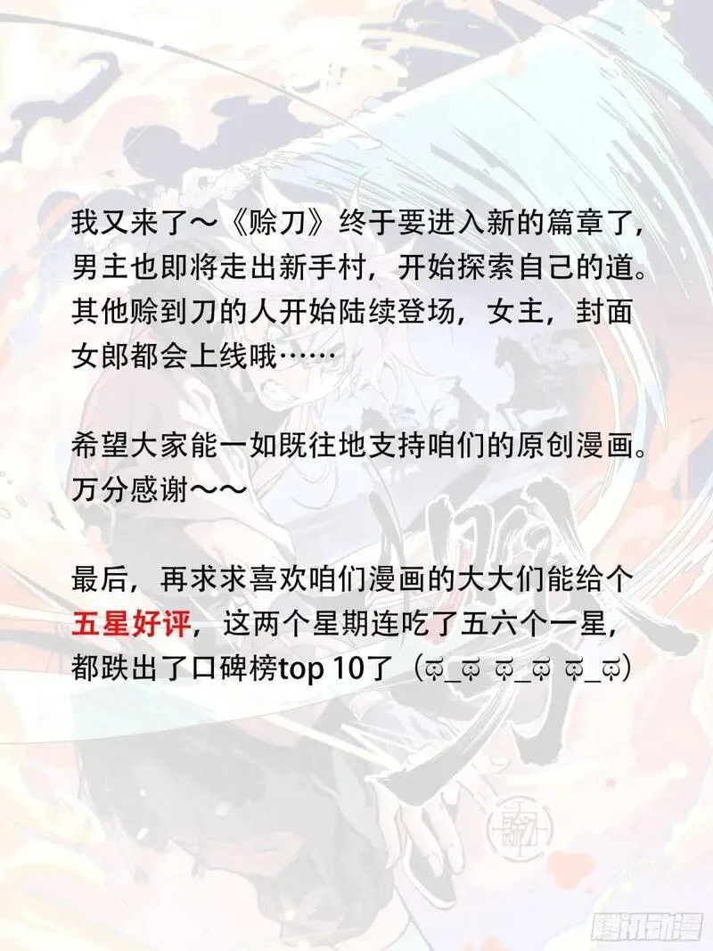 赊刀又名,类型为格斗|热血的高人气漫画,漫画简介:每逢乱世灾年,赊刀人便会出现,将合适的铩刀赊给有缘人,不收分文,只留下几句谶语。待谶语应验之时,再来收取“刀资”。出身贱籍的树羽从赊刀人唐刀那儿赊到了一把名为“木正”的铩刀,获知了自己的谶语,并得到了...