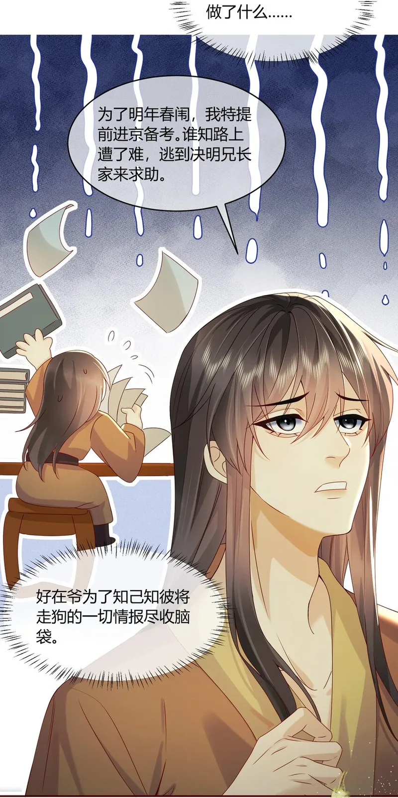 宿敌与我同榻而眠又名宿敌与我同榻而眠,类型为连载中|国漫|其它的高人气漫画,漫画简介:墨家首领千里光为确认自己的宿敌,秦国皇帝的第一走狗未决明是否真的死期将近,于是假扮对方的表弟潜伏进未府一探虚实。 好消息是:对方真的快死了! 坏消息是:对方被自己救活了? 更糟糕的是:自己被对方缠上了?还要求同吃同住同榻而眠?! 未决明对自己的“表弟”也是始于能力,陷于颜值,忠于人品,就在未决明还在纠结自己该不该心动时,却察觉到表弟似乎就是自己一直抓捕的千里光?!
