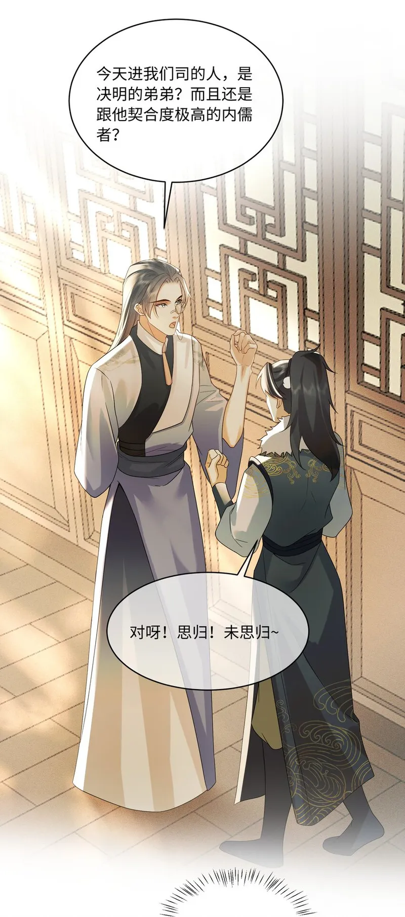 宿敌与我同榻而眠又名宿敌与我同榻而眠,类型为连载中|国漫|其它的高人气漫画,漫画简介:墨家首领千里光为确认自己的宿敌,秦国皇帝的第一走狗未决明是否真的死期将近,于是假扮对方的表弟潜伏进未府一探虚实。 好消息是:对方真的快死了! 坏消息是:对方被自己救活了? 更糟糕的是:自己被对方缠上了?还要求同吃同住同榻而眠?! 未决明对自己的“表弟”也是始于能力,陷于颜值,忠于人品,就在未决明还在纠结自己该不该心动时,却察觉到表弟似乎就是自己一直抓捕的千里光?!