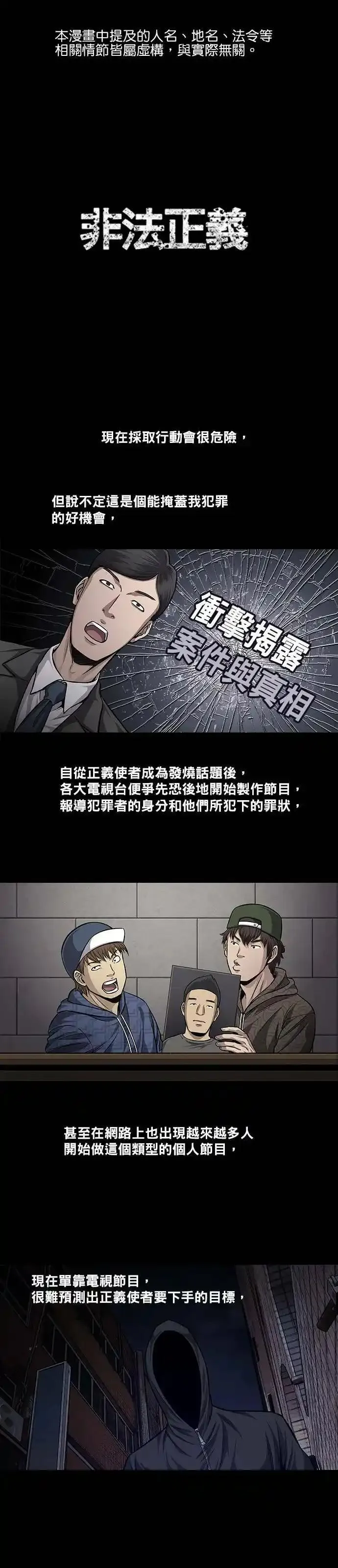 非法正义又名,类型为悬疑推理的高人气漫画,漫画简介:《虫穴》作家新作登场!法律存在着漏洞,我要去填补那些漏洞。要怪就怪法律把你放了出来!