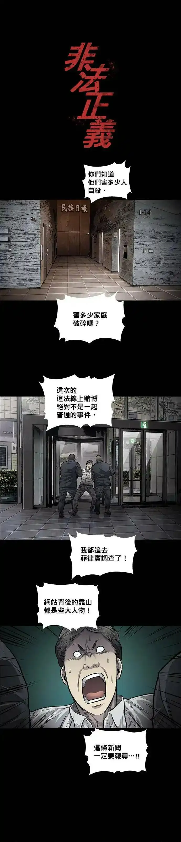 非法正义又名,类型为悬疑推理的高人气漫画,漫画简介:《虫穴》作家新作登场!法律存在着漏洞,我要去填补那些漏洞。要怪就怪法律把你放了出来!