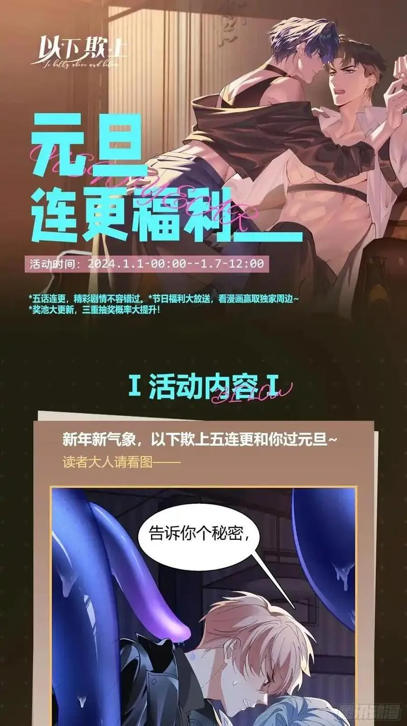以下欺上又名,类型为复仇|强强的高人气漫画,漫画简介:“狂飙”卧底无间道,双强极限推拉,暴躁杀伐年下小狼狗VS温柔强大腹黑美人蛇,看正邪两道的相爱相杀……